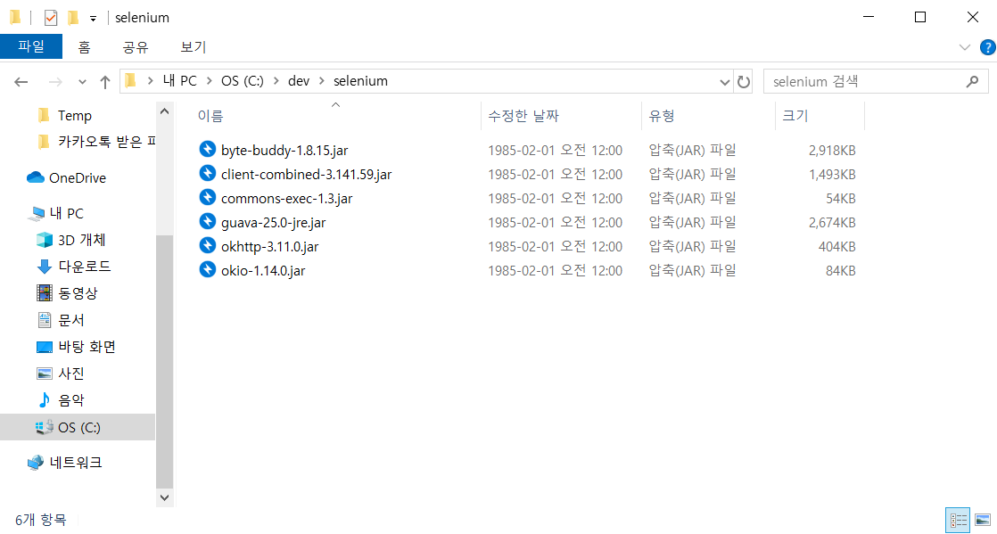 크롬 드라이버의 압축 파일을 푼 뒤 나온 실행 파일을 파일 6개를 옮겼던 폴더로 옮겨줍니다.