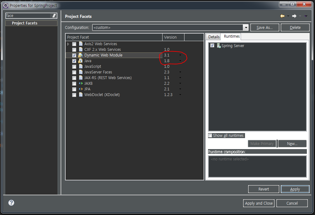 프로젝트 우클릭 - [Properties] - [Project Facets]
