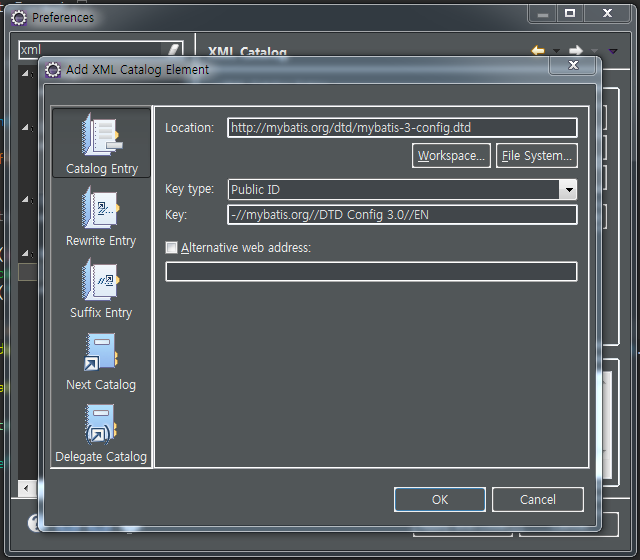 >> mybatis-config.xml 설정 파일 생성 시 DTD 설정을 해두면, mybatis 관련 xml 파일 설정할 때 재사용 할 수 있음