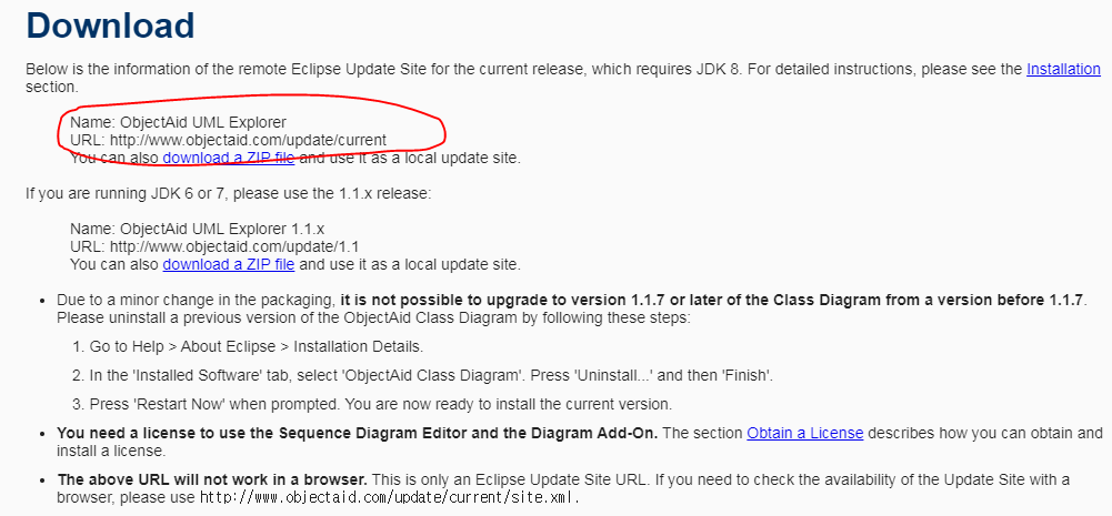 위의 ObjectAid 사이트의 다운로드 탭에 들어가면 이클립스에서 적어야 하는 부분이 나온다.