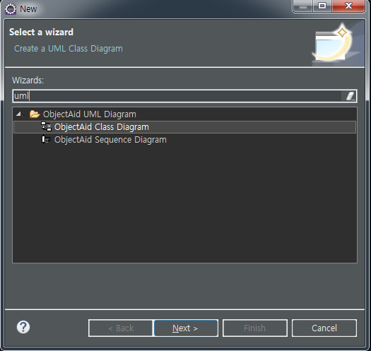 UML을 다운로드 받은 뒤 클래스 다이어그램을 출력하고 싶은 프로젝트에서 ObjectAid Class Diagram을 생성해준다.
