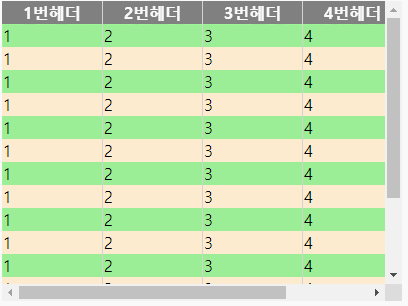 이 방법이 좋은이유는 테이블이 가로스크롤에 대해서는 자연스럽게 스크롤되면서 세로스크롤에서는 헤더가 고정이 됩니다.